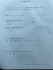お問合せをいただき、即日対応が可能な当社にご依頼をくださいました。