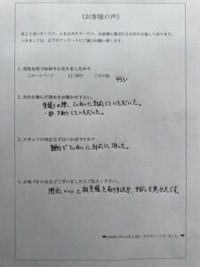 他社の見積は口頭のみで熱意も感じられませんでしたが、関西プロスタッフさんは熱意と誠意を感じたのでお願いしました!