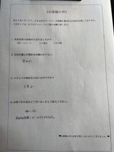 見積もりにお伺いした際のスタッフの対応が丁寧で料金内容の説明もわかりやすかったことや、料金が他社様に比べて良心的だったことから当社にご依頼をくださったとのことです。
