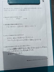 不安もありましたが、スタッフが明るく雰囲気もよかったので安心して任せられました。