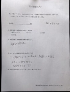 スタッフの親切さと値段の安さが決め手になり、当社にご依頼頂き