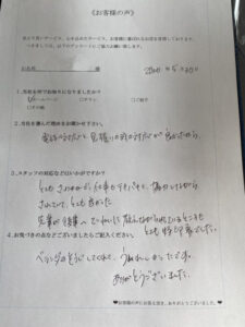 お客様から大変ご好評を頂いており、今回もお客様から喜びの声を