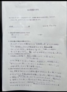 とお褒めの言葉を頂き、とても喜んで頂きました。
