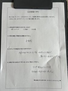 他社様と比べて料金が良心的だったことや、見積もりにお伺いしたスタッフの対応が丁寧だったことが決め手となり、当社をお選びいただくことができました。