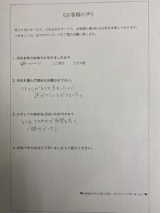 お客様から、スタッフの態度についてお褒めのお言葉をいただきました。