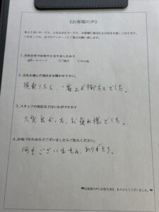 お客様のご希望の作業日でお伺いすることが可能だったことや、見積もりにお伺いしたスタッフの対応が良かったことが決め手となり、当社にご依頼をいただくことができました。