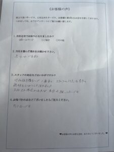 - A10社見積もりで一番よくスタッフの対応の素早く説明もしっかりしていただきました。 次回はまたの機会があれば、ぜひお願いしたいです。