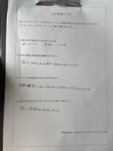 口コミなどの評価のとおり、スピーディに対応していただけて、スタッフの方も親切でした!