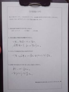 - A丁寧に相談にのっていただき、金額面でも良くして頂きました。
