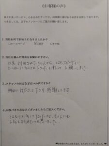 見積もりにお伺いした担当スタッフの対応が親切で好印象を持ってくださったことが決め手となり、当社にご依頼をくださったとのことだす。