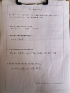 問い合わせをしてから迅速な対応で、またお願いしたいと思いました!