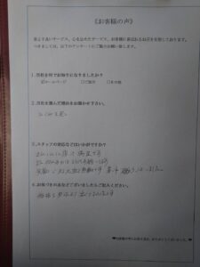他社様に比べて見積もり料金が安かったことや、対応したスタッフの雰囲気に好感を持ってくださったことで当社をお選びくださったとのことです。