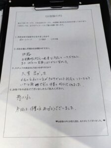 行なったことや、見積もり時のスタッフの対応が良かったこと、他社様に比べて