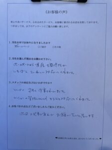 今回も、作業後にお客様から