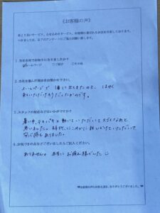 他社様にもお問い合わせをされたとのことでしたが、問い合わせからお見積もりにお伺いするまでが一番迅速だったことや、お伺いしたスタッフの態度が丁寧で好感を持ってくださったことが決め手となり、ご依頼をいただくことができました。