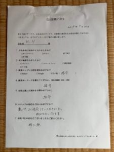 - A暑い中、よく対応していただきました。 ありがとうございます。