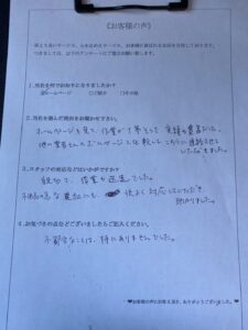 ホームページを見て作業が丁寧そうで、実績も豊富だったことや、見積もりの際に他の業者様にもお問い合わせをされてましたが、他社様と比較して良心的な料金だったことなどが決め手となり、当社にご依頼をいただくことができました。