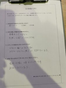対応したスタッフの雰囲気がよかったために、お客様が好感を持って下さり