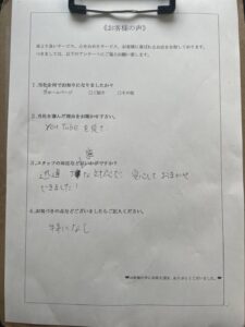 お困りのところ当社のYouTubeをみてご連絡をくださいました。