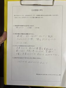 問い合わせ時からスタッフの対応が丁寧だったことや、料金が他社様に比べて良心的だったことが決め手となり、当社をお選びいただけたとのことです。