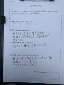 見積もり段階から対応してくださったスタッフさんが細かく丁寧に説明してくれて、とても信頼できました。