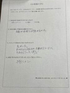 『1日で終わると思っていなかったので、仕事が早くて驚きました!』とお褒め