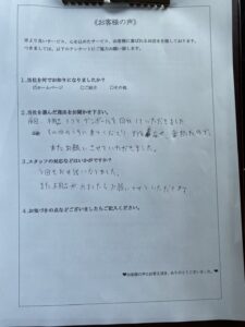 ので、お問い合わせをいただいてすぐにお客様のもとへお伺いいたしました。