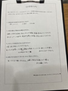 作業後にお客様からは、『作業中も都度お声掛けをいただき細かい配慮をしていただけたので、安心してお任せできました!』との嬉しいお言葉をいただくことができました。